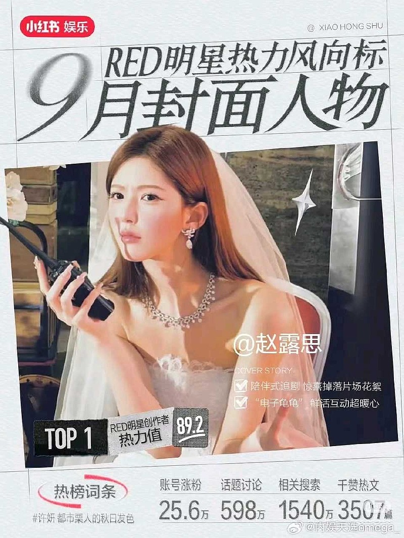5.赵露思单人词条 小红书播放量255亿 ,内娱首位小红书浏览破200亿的女明星