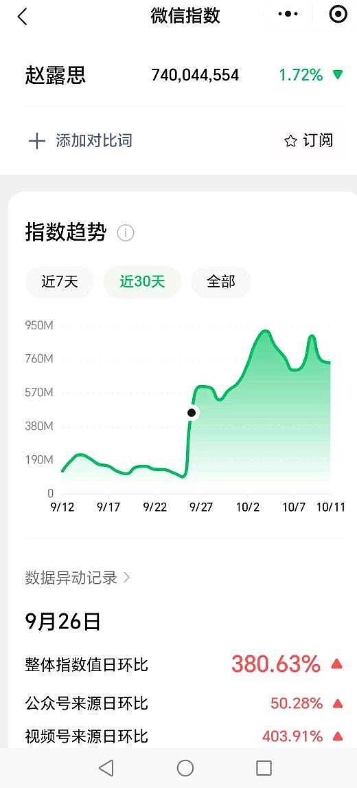 6.赵露思微信指数近一年来女明星第一,《许我耀眼》热播时,最高峰单日接近10亿数值