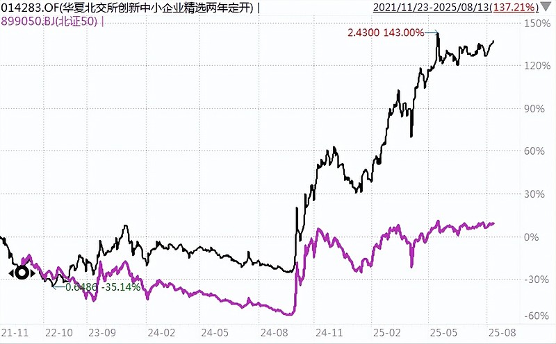 这也可能是“华夏北交所创新中小企业精选两年定开”业绩持续能打的原因所在,今年又涨了76.48%,成立以来涨了137.21%,大幅跑赢北证50指数(数据来源:Wind,截至2025年8月13日)。