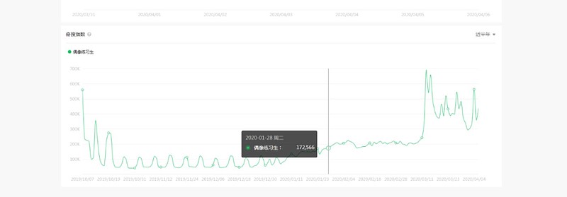 我专门登录一下爱奇艺指数网站,查一下关键词:偶像练习生