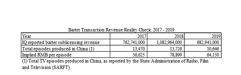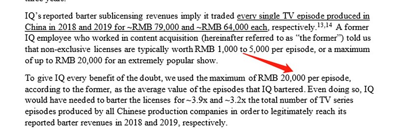 做空报告的核心逻辑:爱奇艺的卖剧的收入,明显高于市场上限2万块一集。