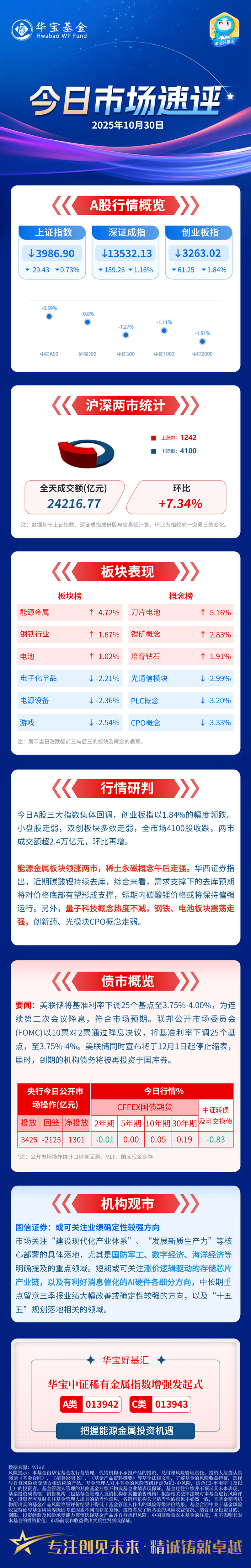 能源金属板块领涨两市,稀土永磁概念午后走强。华西证券指出,近期碳酸锂持续去库,综合来看,需求支撑下的去库预期将对价格底部有望形成支撑,短期内碳酸锂价格或将保持偏强运行。另外,量子科技概念热度不减,钢铁、电池板块震荡走强,创新药、光模块CPO概念走弱。