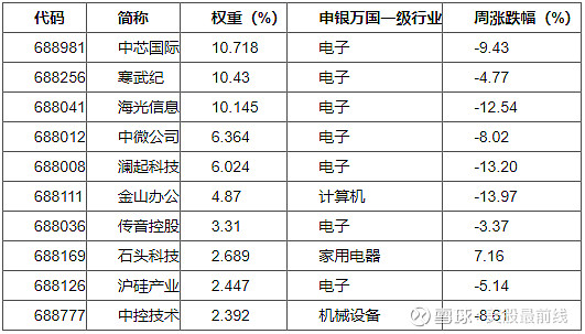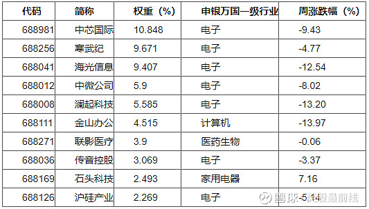 行业层面,科创板前五大行业分别为电子、医药生物、电力设备、计算机和机械设备,合计占科创板88%的公司市值。据申万一级行业统计,过去一周科创板中计算机、电子、通信、国防军工等板块跌幅靠前。
