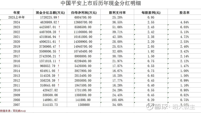 $中国平安(02318)$ 早在监管层提倡“多次分红”前就是国内上市公司中少数一年两次分红的企业。$中国平安(SH601318)$ 自2007年A股IPO后,除极特殊年份外中国平安始终保持一年两度分红。10月23日(今天)是中国平安2025年中期股权登记日,24号(即明天)为中国平安除权除息日。