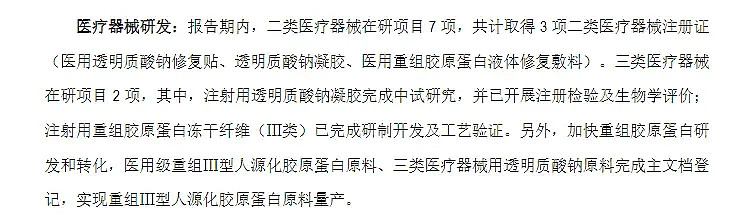 据公司财报披露,截至2025年9月30日,福瑞达已斩获七项二类医疗器械认证,另有两项三类医疗器械项目处于研发推进中,其中之一就是注射用重组胶原蛋白冻干纤维。这成为其医美场景的专业性背书。