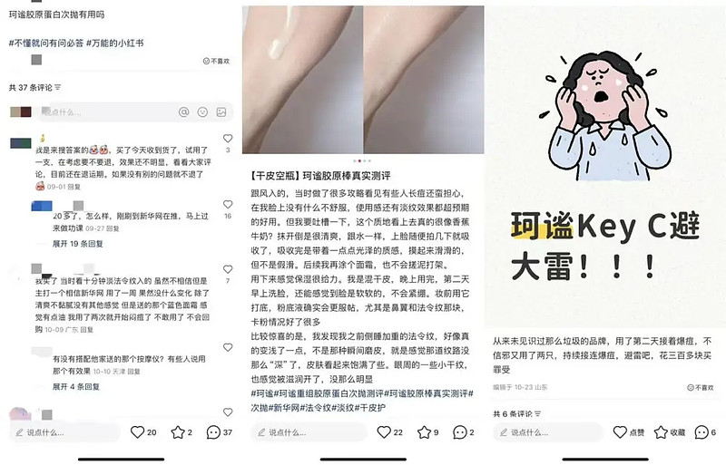 「创业最前线」浏览了社交平台上,不同用户发布的测评贴及评论后发现,部分用户使用次日皮肤状态就有所改善,而也有用户使用后连续爆痘。
