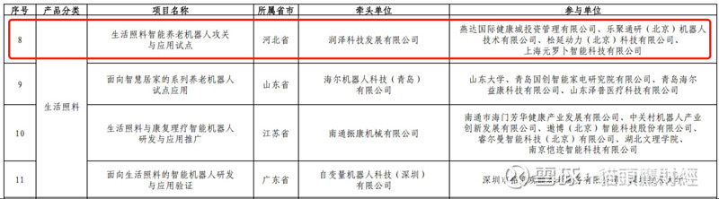 智能养老服务机器人结对攻关与场景应用试点项目公示名单(部分)