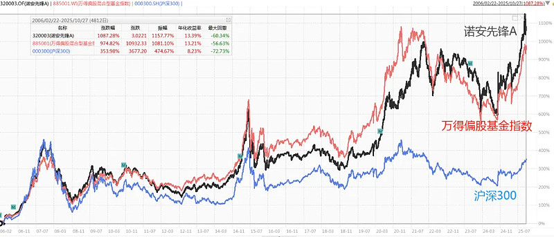杨谷也是“双十基金经理”之一,管理诺安先锋快要满20年了,取得了超10倍的收益率,获得过2次金牛奖和1次金基金奖,尤其是获得了20年持续优胜金牛基金经理奖。(2006-02-22至2025-10-27,数据来源:Wind)
