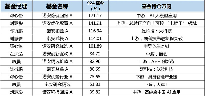 我认为,这一方面,依托诺安基金在科技板块的前瞻布局,科技团队整体都取得了不错的业绩。另一方面,诺安基金老、中、青三代基金经理梯队建设完善,量化部门也有不错发挥。
