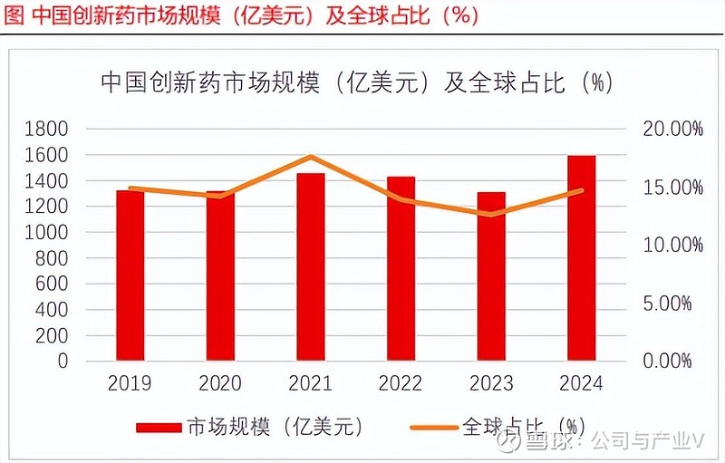 据相关统计及预测,2024年我国创新药市场规模达到1592亿美元,占全球比例仅有15%左右。