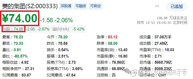 值得注意的是,最近几年的人民币/港币汇率,也同样是在1.11~1.25之间波动。所以投资H股时,笔者追求的就是模糊正确。通常不考虑货币单位,而是AH股的股价数值相等即为合理。以美的集团为例,如果A股的实时报价为74元人民币,那么H股的合理股价就应为74港元。H股明显高于74港元,就搬砖去A股,反之就搬砖去H股。