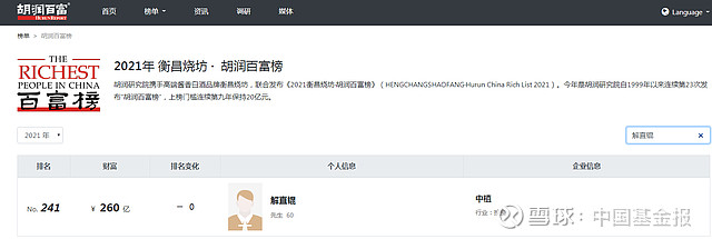 据胡润百富榜官网显示,2021年解直锟以260亿身价,登上胡润百富榜第241名。