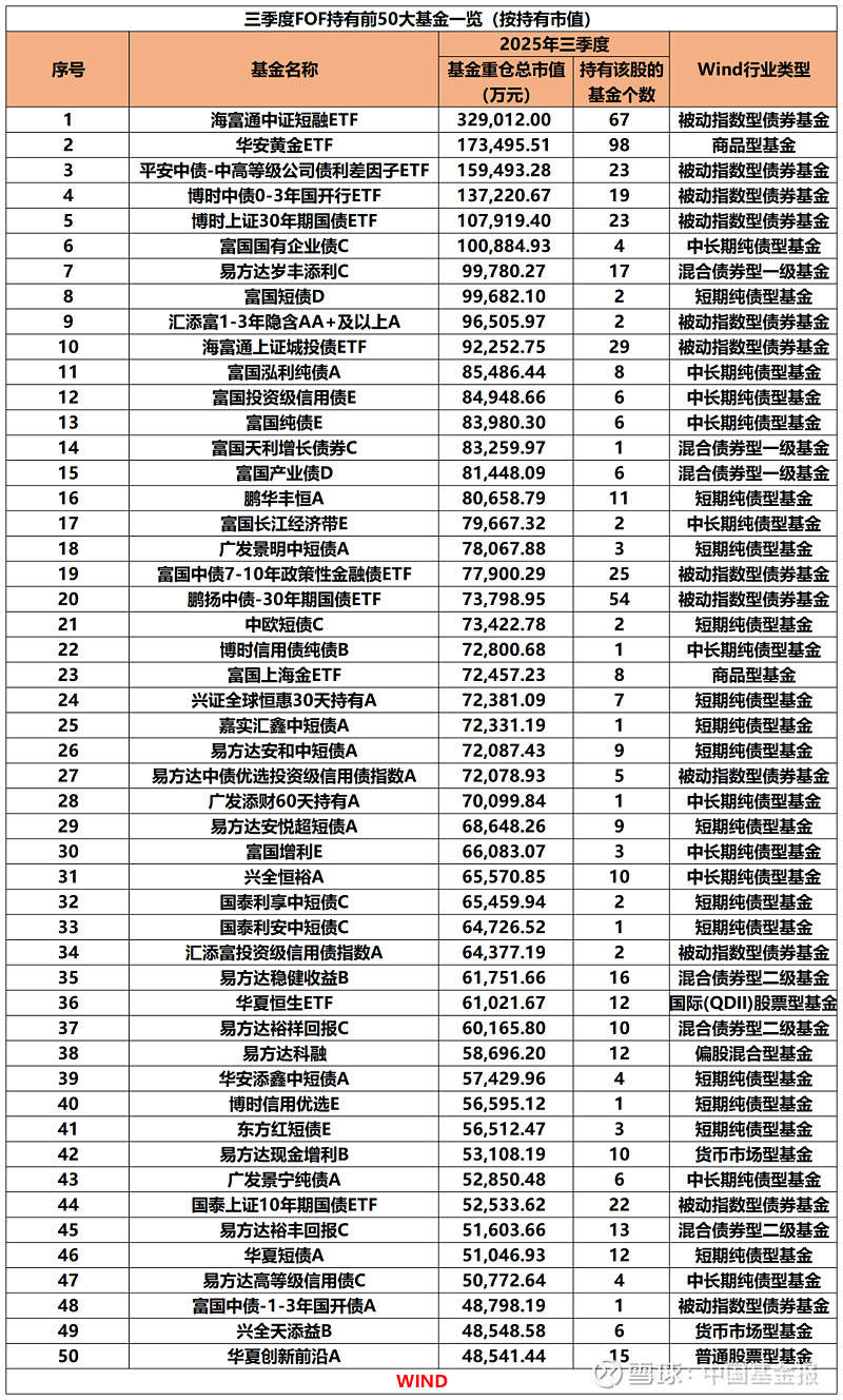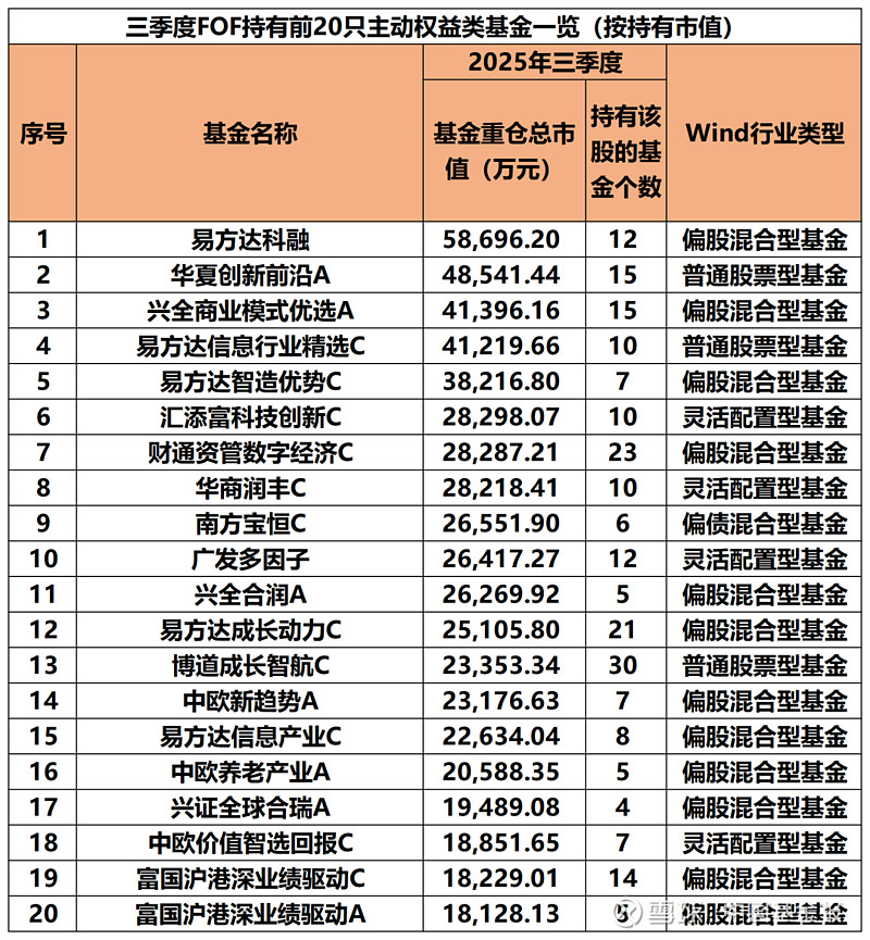 随着基金2025年三季报披露完毕,有着“专业买手”之称的公募FOF最新重仓基金情况浮出水面。