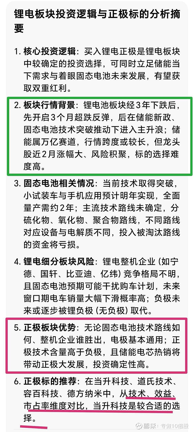 如果提前买入固态电池潜力股,经过炒作储能后过渡到炒作固态电池,很可能在时间上会承接并延续,获得双重红利。