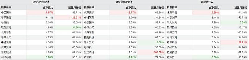 但各自侧重点却截然不同:诺安成长混合定位“中国科技龙头”买的那些老大哥;诺安优化配置混合专注“中国芯片突破”,例如晶圆厂、光刻机、EDA;诺安研究优选混合着眼“半导体生态建设”,更注重算力和自主创新的前瞻布局。三者形成了完整的产业链覆盖。