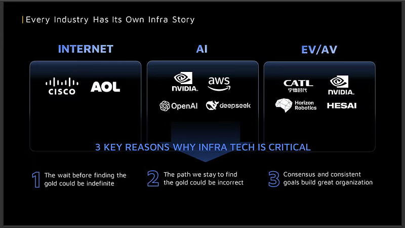 我认为,宁德时代、英伟达、地平线,包括我们禾赛,都是在为AI行业和汽车行业做最重要的基础设施建设。