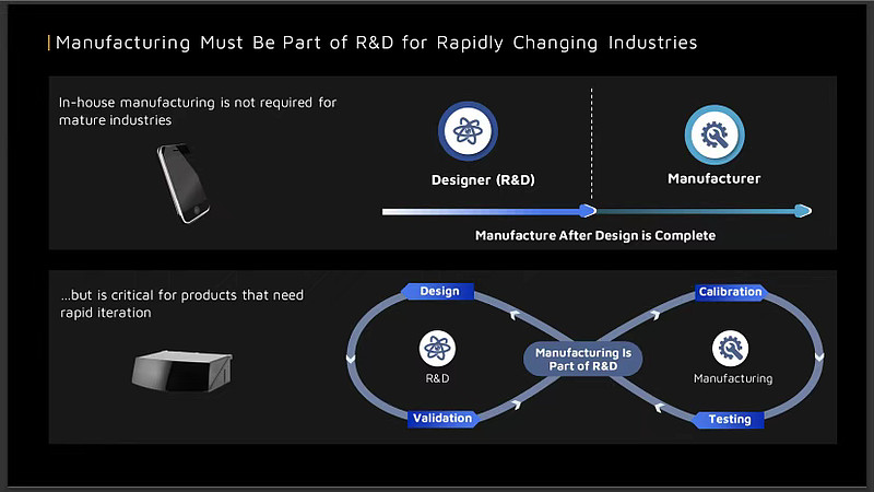 此外,在西方工业或者说是传统制造业中,很多时候研发和制造是分开的。但禾赛的理念是“制造是研发的一部分”。如果把研发和制造彻底拆开做的话,产品周期会特别长。典型的负面案例就是美国硅谷的公司想在硅谷研发,在中国制造生产,最终完全失败。