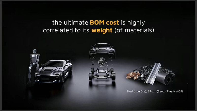 不论是以后的机器人还是汽车,把它拆解到最后,最终的组成部分就是钢铁、芯片和塑料。钢铁、芯片和塑料不就是铁矿、沙子和石油?如果机器人技术足够好,挖矿的、挖沙子的、挖石油的也是机器人,成本还能又降一大波。