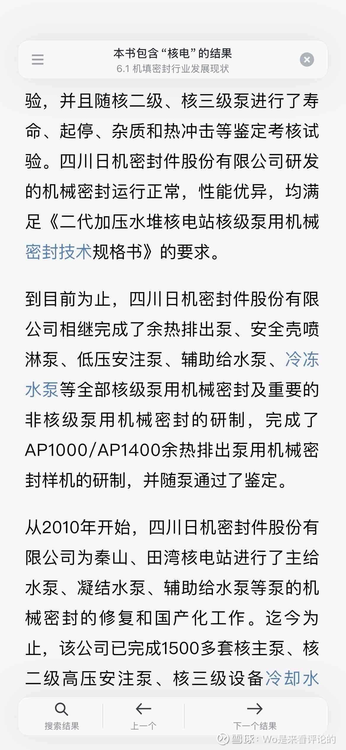 同花顺(300033)金融研究中心11月03日讯,有投资者向中密控股(300470)提问, 请问贵司未来是否会在核主泵一级密封上有所突破? 公司回答表示,投资者你好,公司在国内核电领域几乎没有竞争对手。因为核电对安全性的要求非常高,执... 网页链接