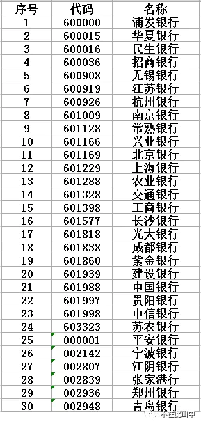 从市值分布上来看,整个A股的银行和地产占大头,且银行股主要集中在沪市(600开头的为沪市)。以下是中证银行的成分股列表: