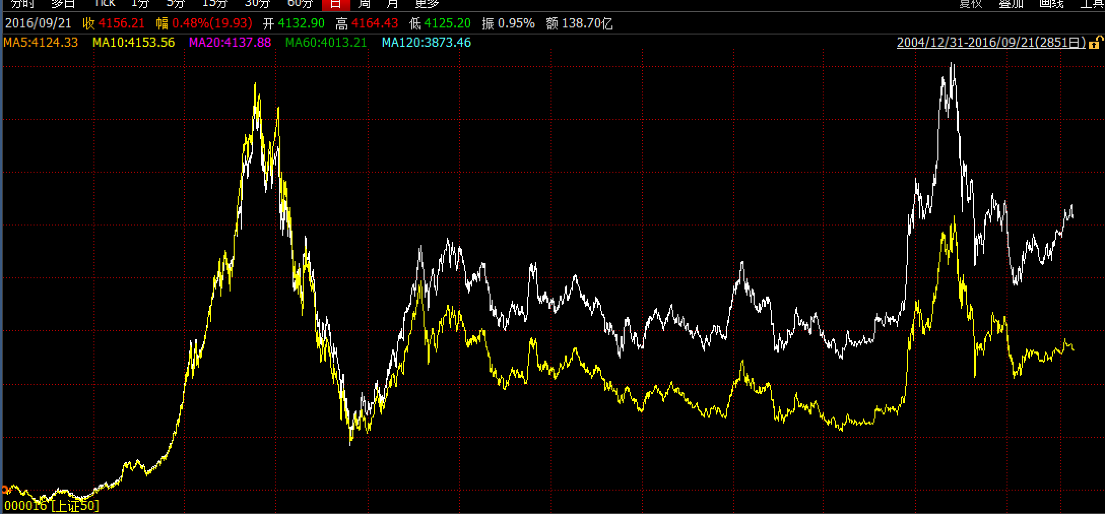 上证50优选指数跟上证50同为2004年12月31日,从1000点起步。到9月21日收盘。
