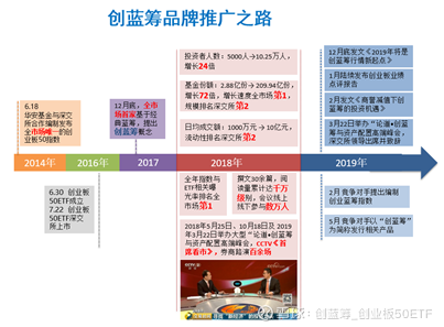 其实,自2017年年底我们首次提出“创蓝筹”概念以来,我们持续在两年多时间内不断地向市场输出对“创蓝筹”概念的正确解读,如2018年年初,在市场普遍不看好创业板时,我司作为买方中第一家推动创业板及“创蓝筹”概念的基金公司,成功判断二月的创业板行情,期间创业板50指数上涨约20%,结合线上线下立体发声,成功打造“创蓝筹”的市场IP。2018年中,通过在北京和上海等地举办了多场 “论道•创蓝筹与资产配置高端峰会”,再次向机构投资者阐述真正的创蓝筹定义,会议结束后创业板50指数均有较大的涨幅。期间投资者的参会热情也非常高涨,现场累计参会数达上千人,互联网累计点击量达三万余人,并得到了数十家专业财经媒体的宣传和报道。