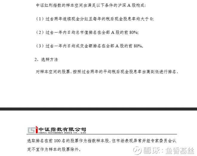 3.满足上面两项,按照过去两年平均税后现金股息率从高到底,选取 前100只股票作为成分股。