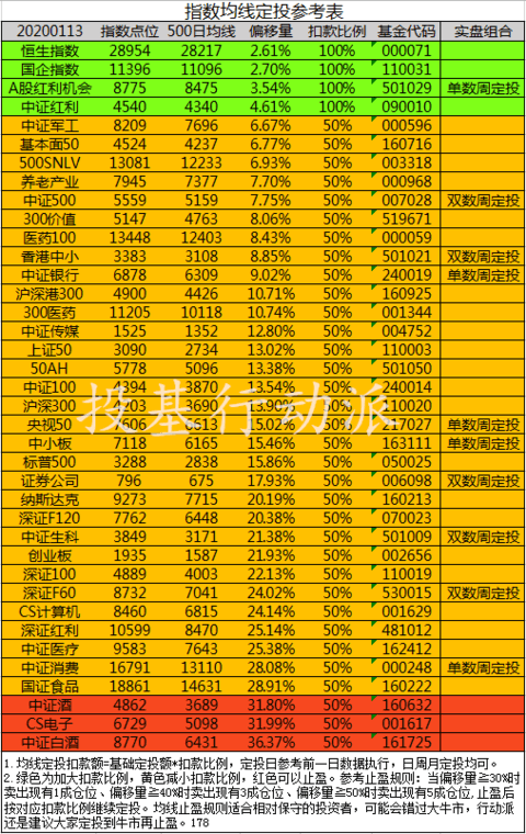 然后送上行动派整理的最新均线定投表,供小伙伴们参考。
