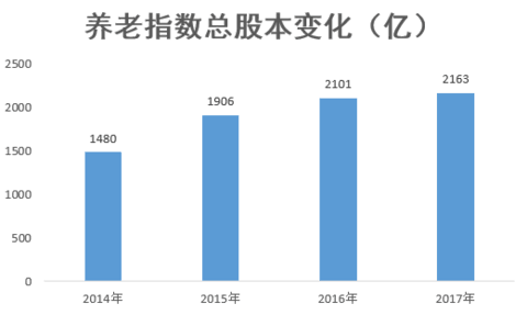 从上表可以看出,养老指数的总股本在过去几年里大幅度提升,而总股本的提升与转送股和定增再融资有关,前者不会影响到企业价值,后者如果处理不当则会大幅影响价值,比如再融资的资金并购了不好的企业。