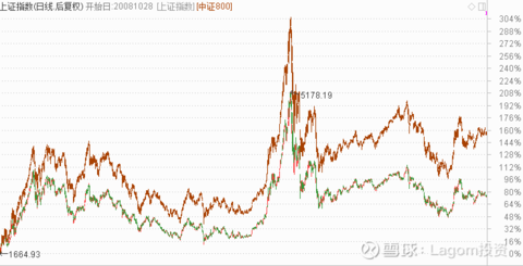 我们将上证指数2008年的1664点作为起点,和中证800进行对比。你会发现同期“中证800指数”大幅跑赢,这也是"上证指数"极度失真的又一佐证。