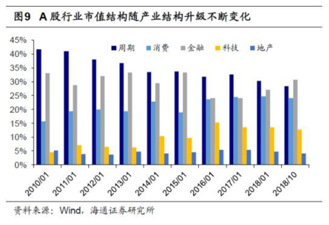 有些朋友可能会说,美股的变化是循序渐进的,A股也会循序渐进,不会那么快。我想说的是,中国过去几十年发展的速度是惊人的,十多年前还火热的五朵金花(银行、汽车、有色、钢铁、地产),现在不都凉凉了?而且在我们的体制下,很多行业的变化推进会比其他国家更快,比如供给侧改革、去杠杆等政策,就大幅改变了一些行业的格局。在目前美国围堵中国发展的情况下,我们更需要在高精尖新兴产业大力突破,行业变化速度可能会快到超越我们想象,投资时切不可刻舟求剑。